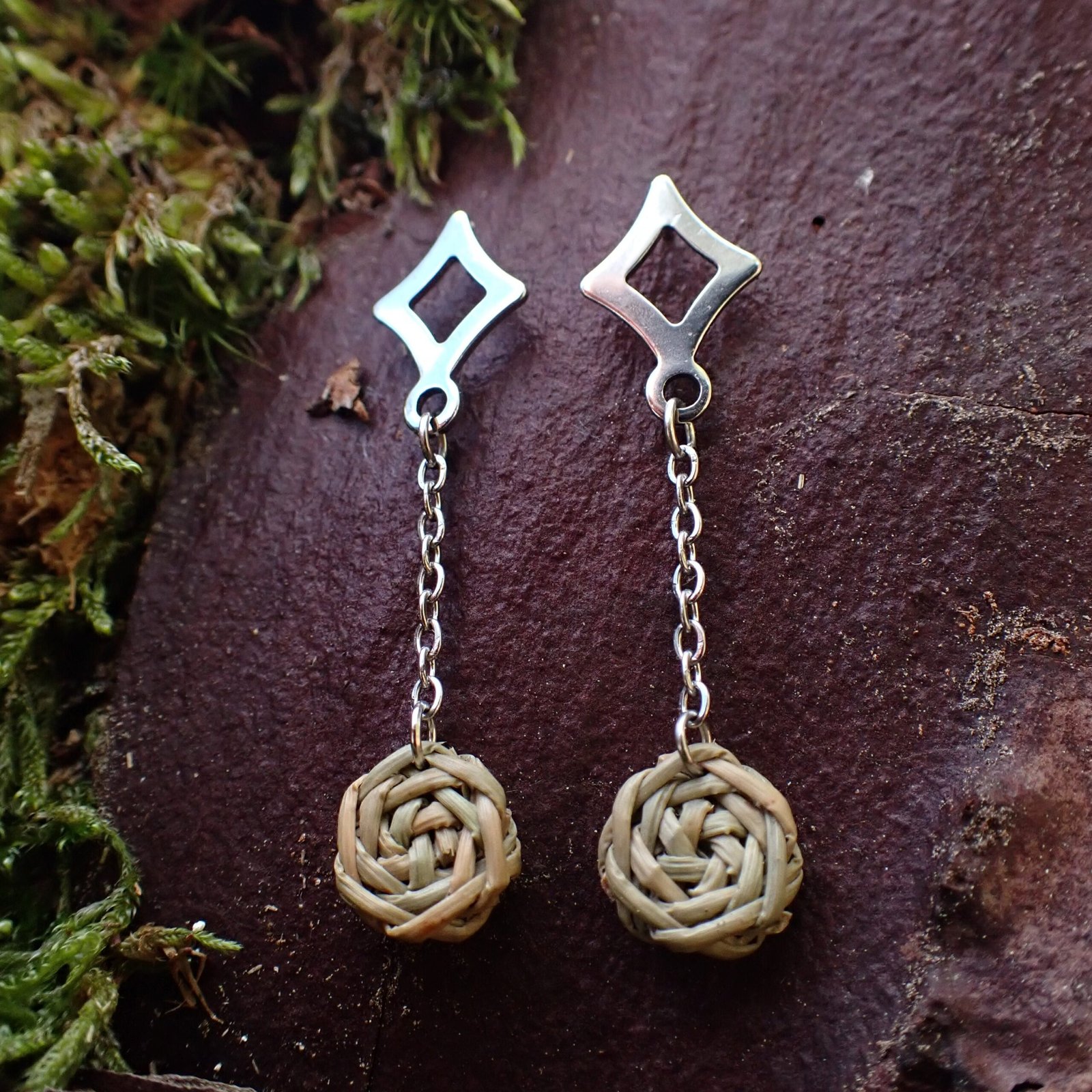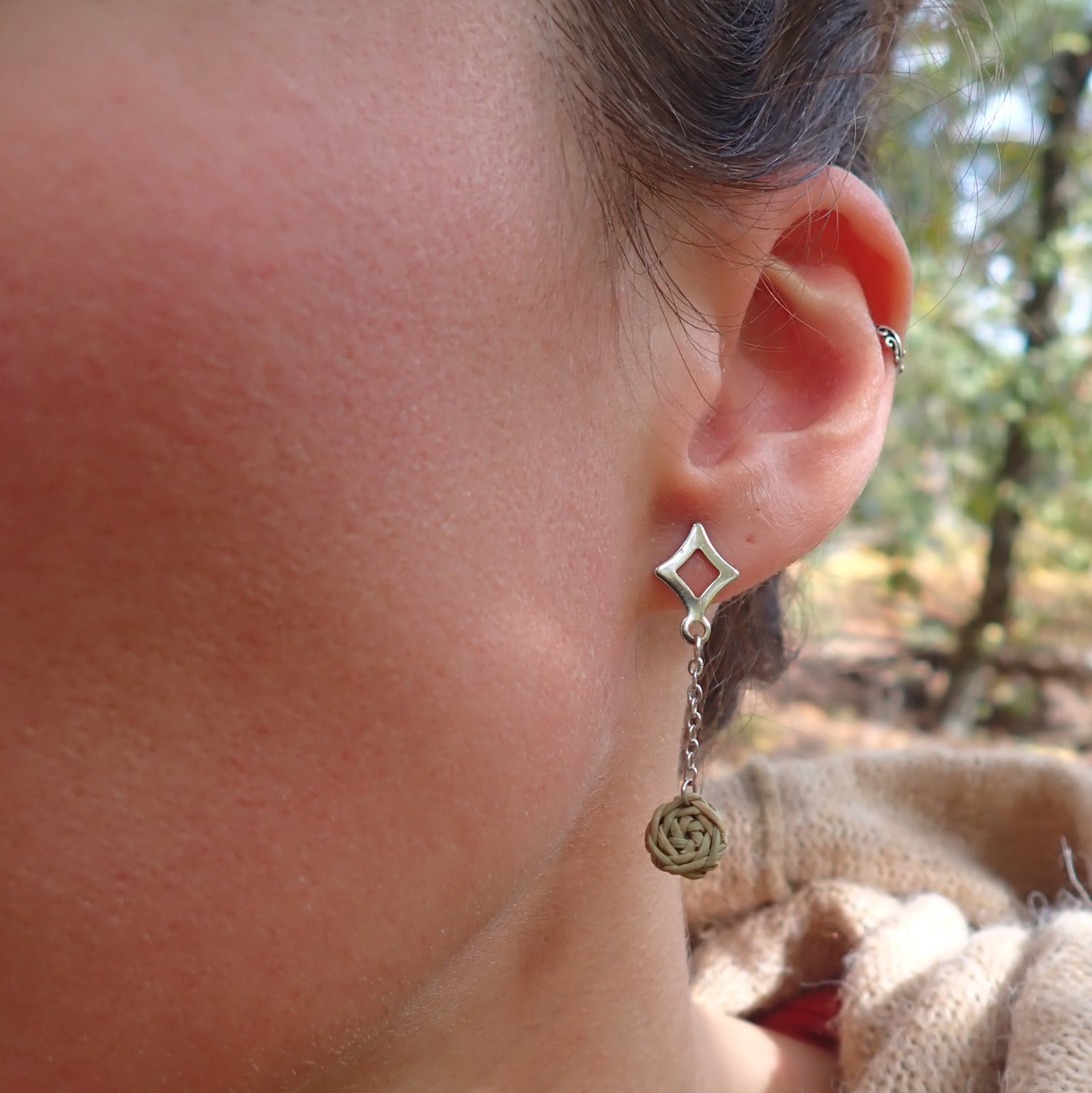 So light you almost forget you are wearing them, the Petite Rose earrings are made from three Aleppo pine needles delicately intertwined to form a fine and delicate knot.